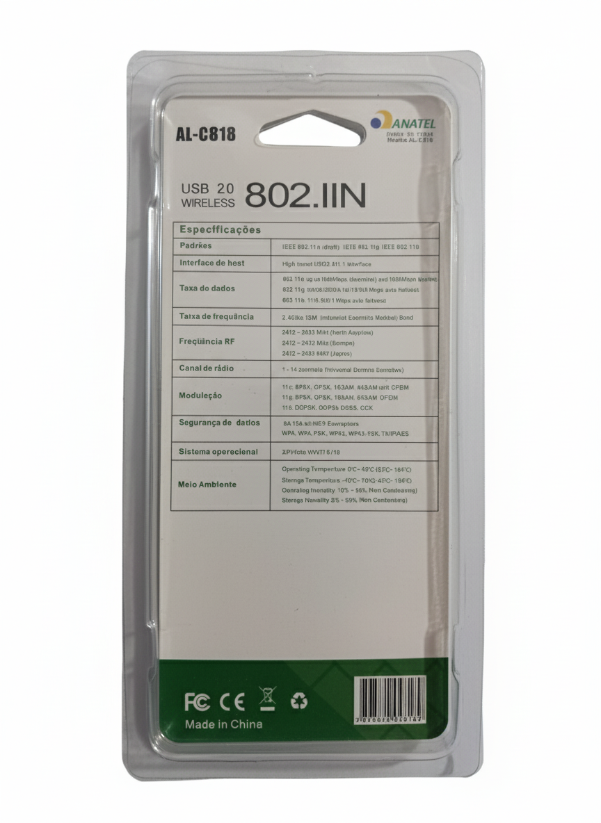 O Adaptador Wireless AL-C818 é uma excelente opção para quem busca ampliar o alcance e desempenho da rede sem fio no computador. Com tecnologia Wi-Fi 802.11n, ele oferece velocidade de até 300 Mbps e funciona na frequência de 2.4GHz, ideal para streaming, videoconferências e jogos online.