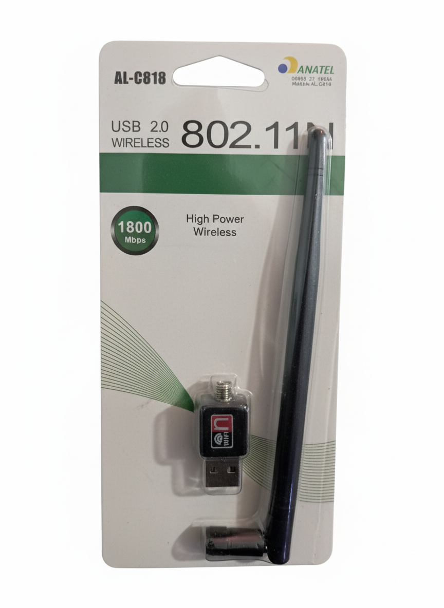 Adaptador USB Wireless AL-C818 — conexão Wi-Fi estável e de alta velocidade.