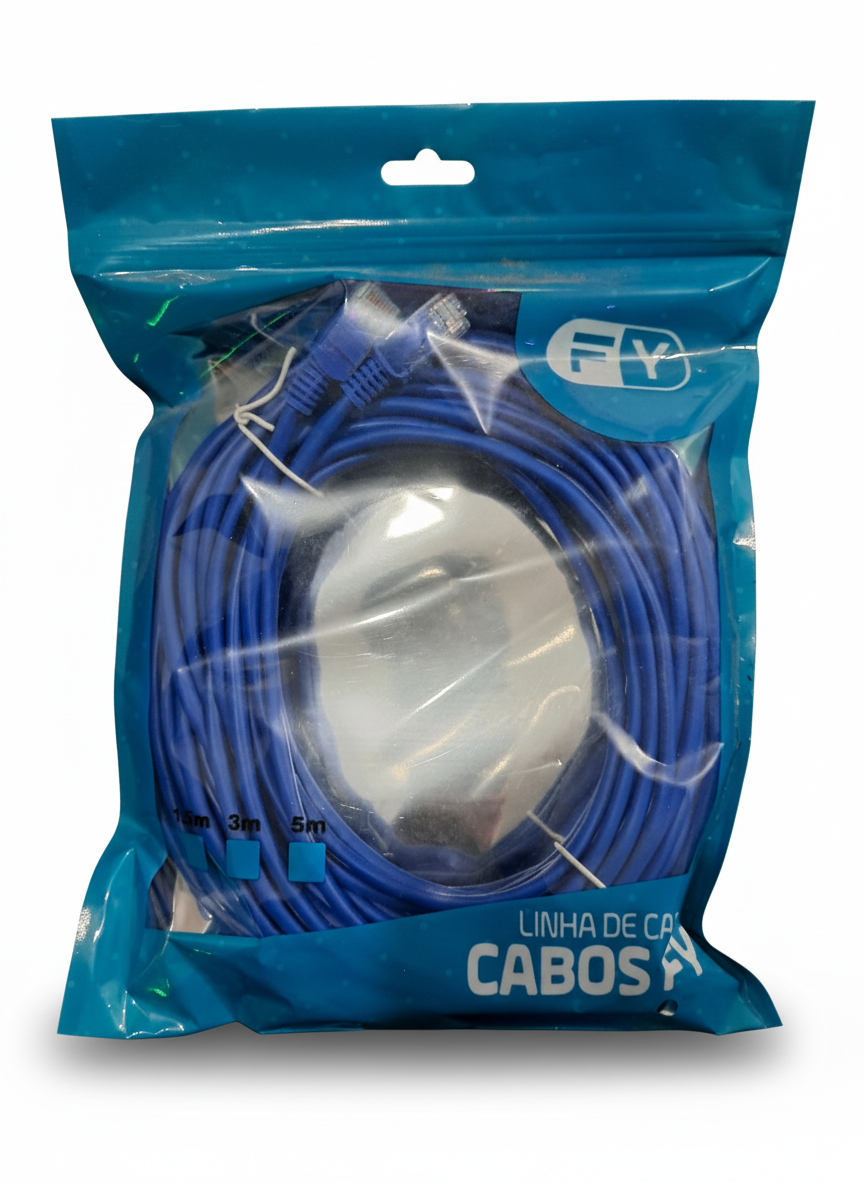 Cabo RJ45 Cat 5 15m — conexão estável e alta velocidade para redes domésticas e empresariais.