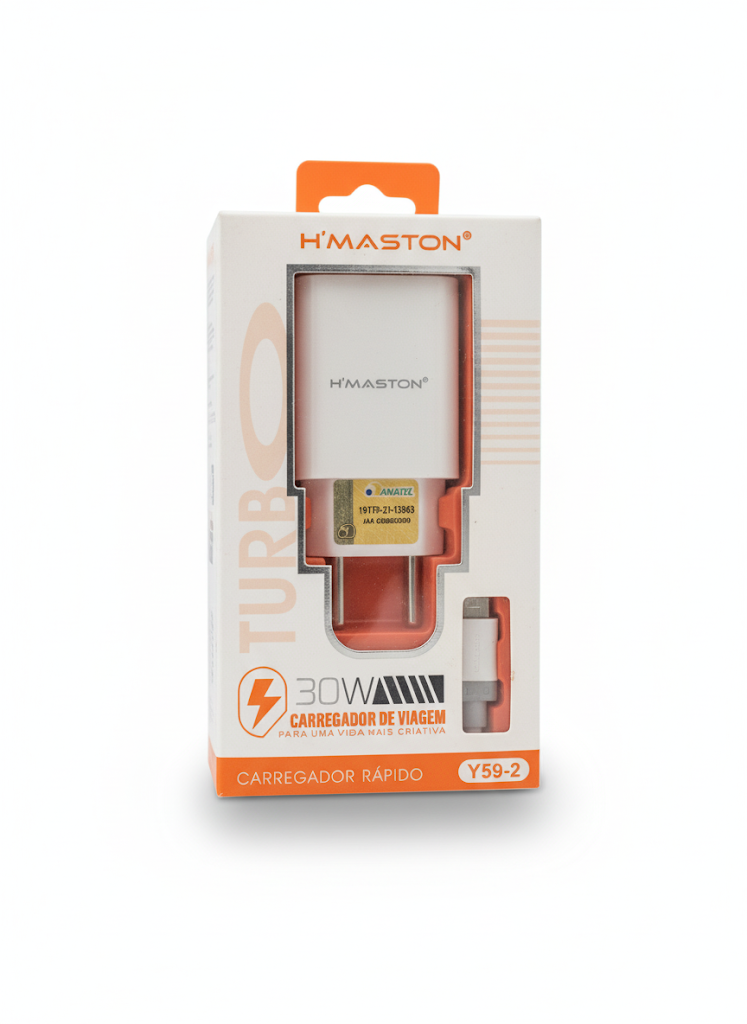 Carregador Turbo H’Maston Y59-2 30W — recarga rápida e segura para iPhones. O carregador que você estava procurando!
