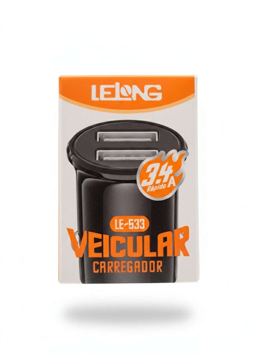 Carregador Veicular Lelong LE-533 — carregamento rápido e seguro durante suas viagens.