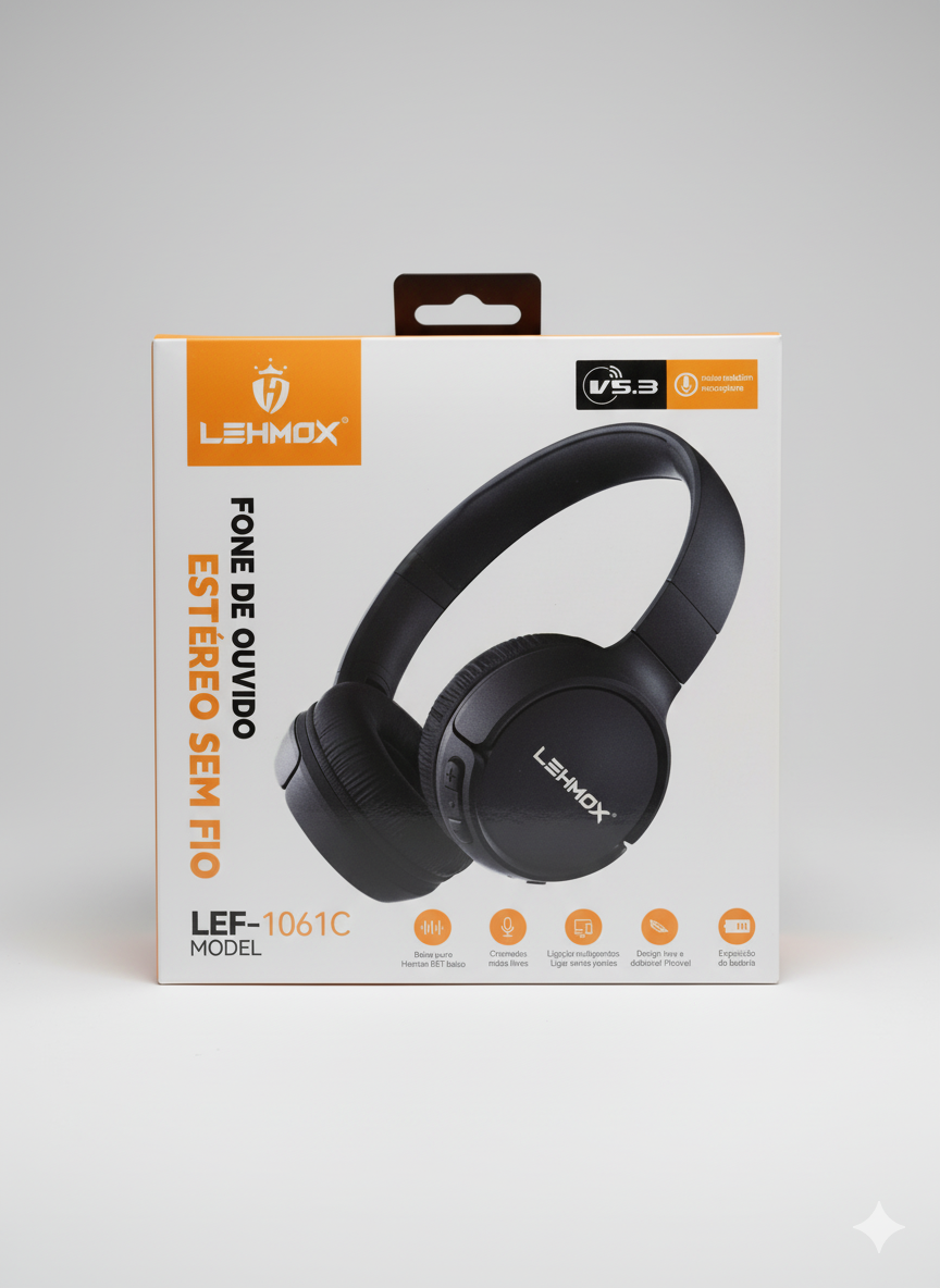O **Fone de Ouvido Estéreo Sem Fio Lehmox LEF-1061C** oferece uma experiência sonora equilibrada e confortável, ideal para uso diário em casa, no trabalho ou em movimento.