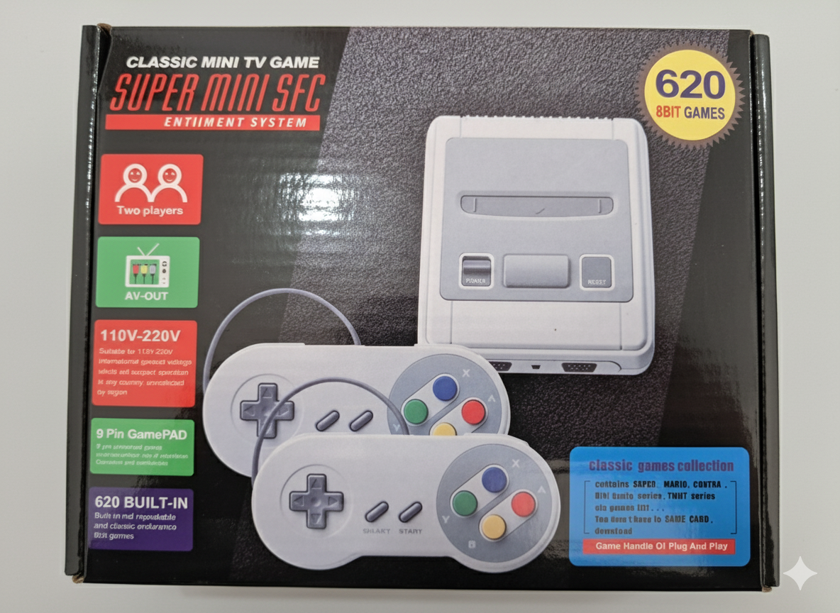 A Super Mini SFC vem pré-carregada com mais de 620 jogos clássicos, incluindo aventuras, lutas, corridas e esportes. Entre os títulos mais populares estão os inspirados em Mario, Contra, Street Fighter, Donkey Kong e muito mais. Com conexão simples via cabo AV para TV, você só precisa ligar, escolher o jogo e começar a diversão. A frase-chave ‘Super Mini SFC (Classic Mini TV Game)’ aparece diversas vezes nesta descrição para otimizar o SEO e destacar o produto.